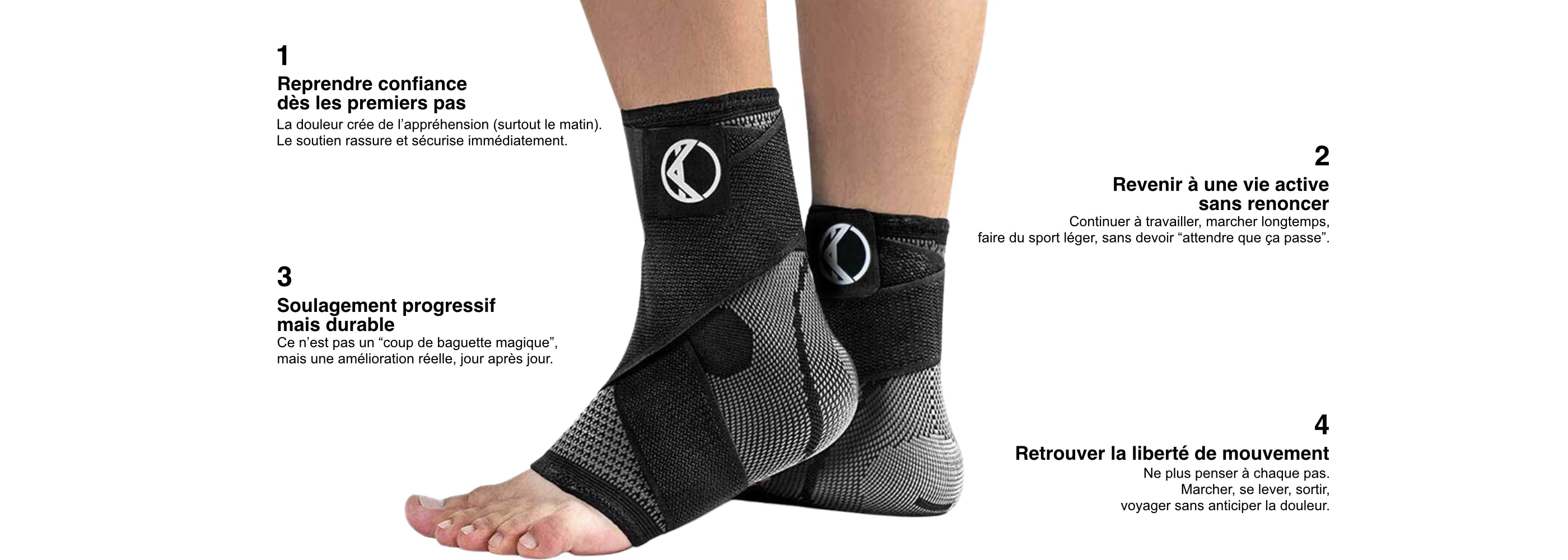 Restez toujours actif et à l’aise toute la journée. Vous souffrez de raideur matinale du pied ? Vous avez du mal à rester longtemps debout ? Vous recherchez un confort qui vous permet de bouger avec assurance ? Le chevillère Kontien offre un soutien innovant qui aide à gérer les douleurs au talon, s’adapte à vos mouvements et apporte du confort à chaque pas.